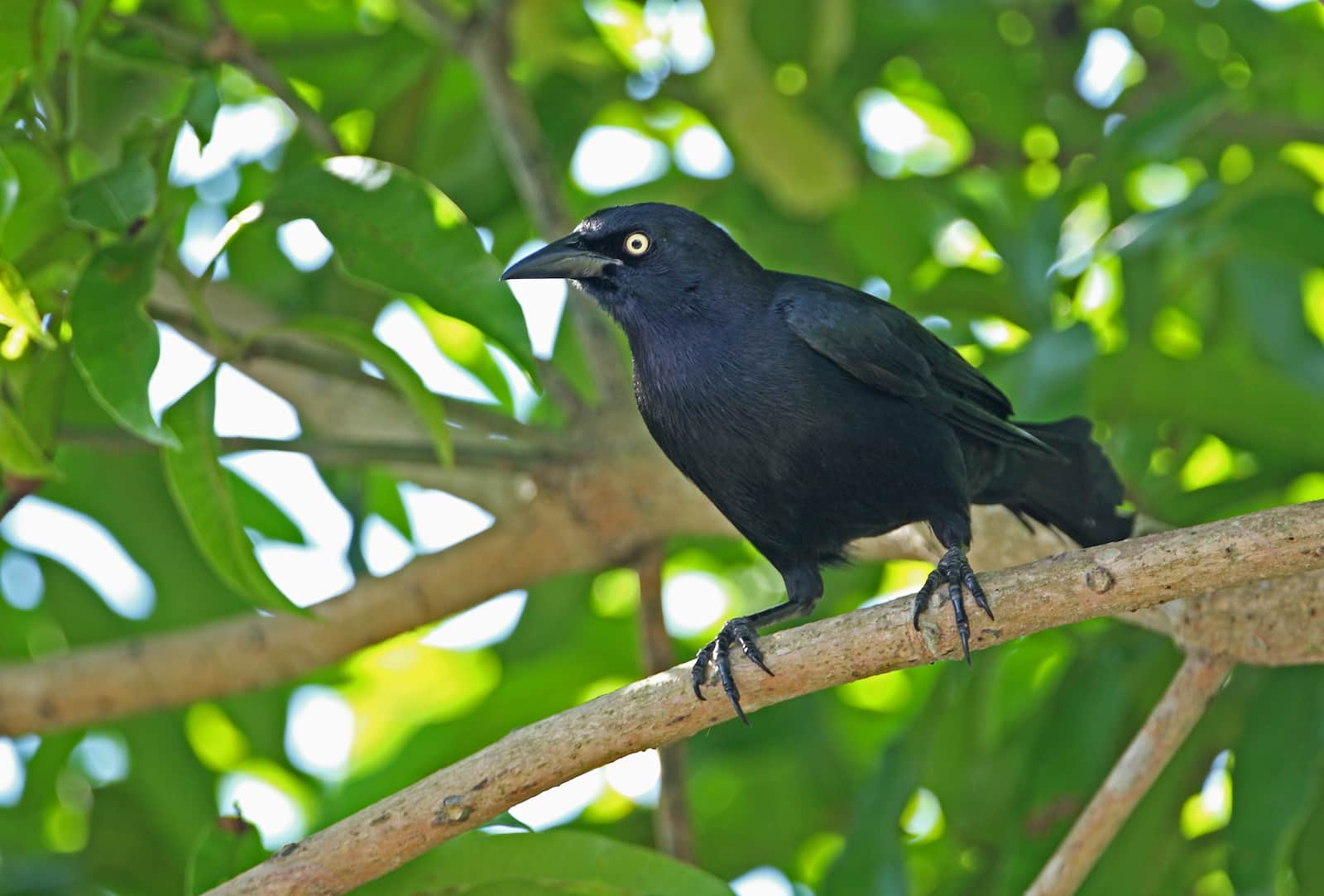 - Se distingue por su aspecto robusto, su característico color oscuro con reflejos verdes o azules, y las carúnculas rojas alrededor del pico