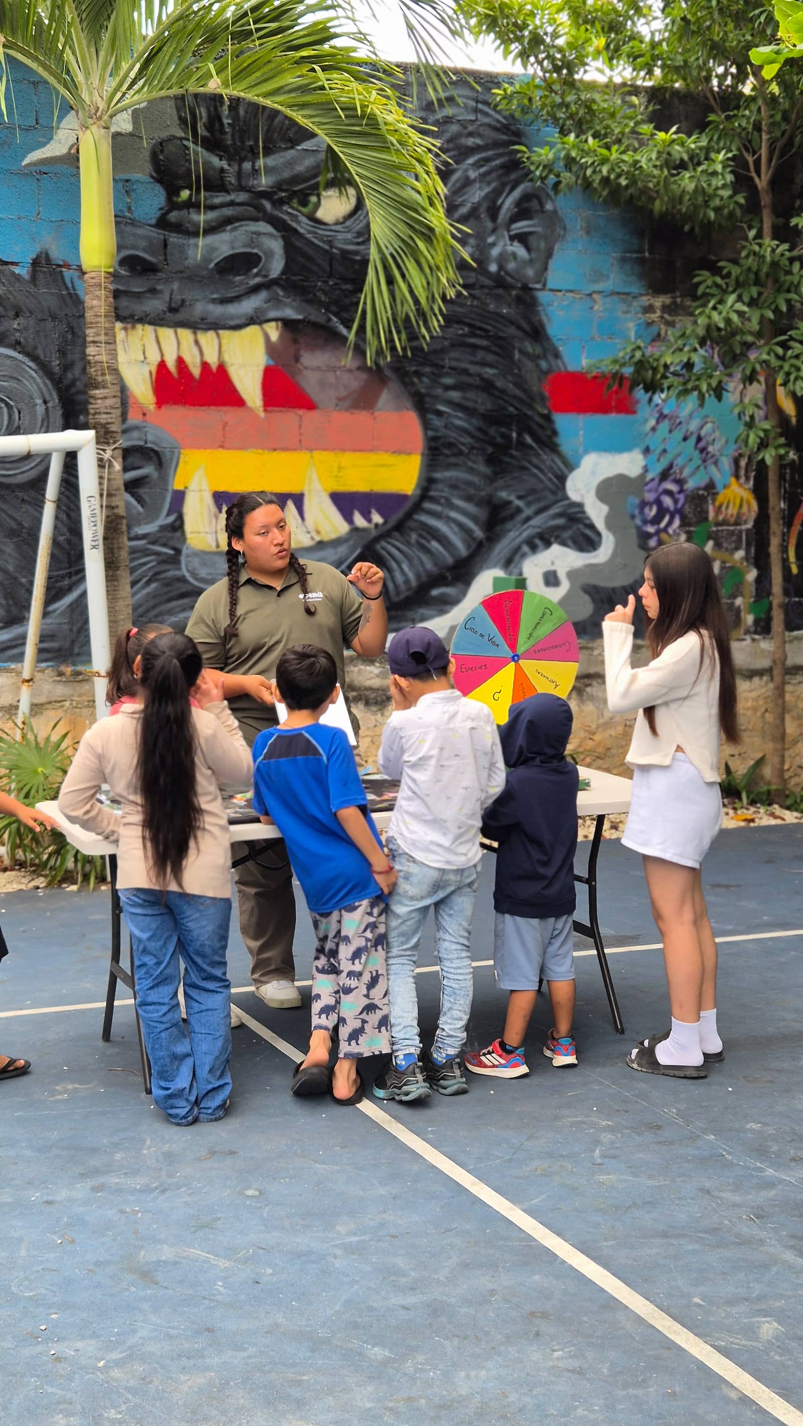 Con la “ruleta del saber” y la creación de un mural colectivo, los grupos reflexionaron sobre los elementos esenciales para la vida del jaguar: selvas saludables, disponibilidad de agua, corredores biológicos, presas y la ausencia de amenazas humanas. Cada imagen colocada en el mural representó un compromiso con la conservación del jaguar.
