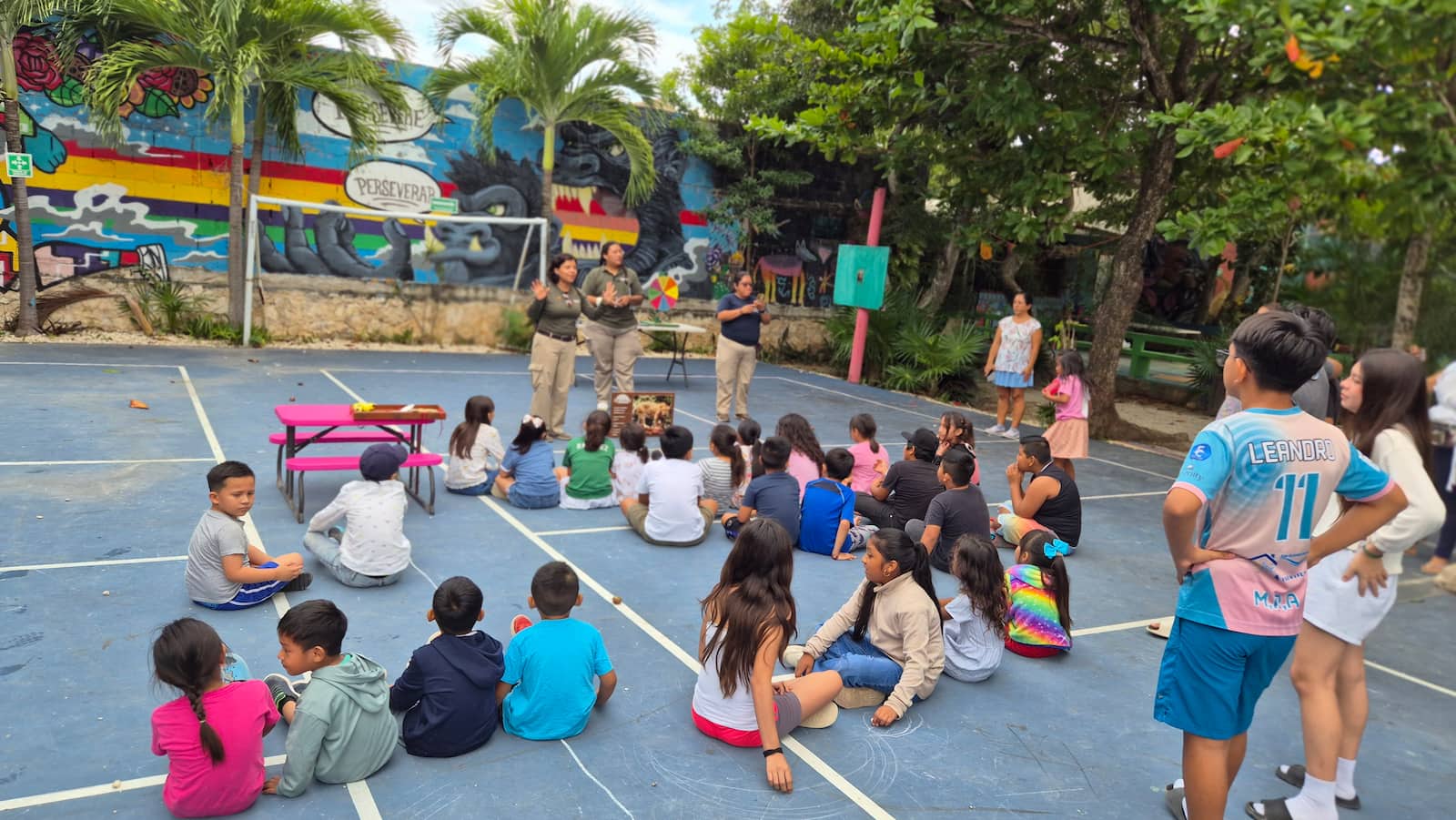 Con motivo del Día Internacional del Jaguar, el equipo de Educación Ambiental visitó el Centro Educativo Hekab Be, en Akumal, para llevar a cabo el rally infantil “Tras las Huellas del Jaguar”. Esta experiencia divertida y formativa reunió a 30 niñas y niños, quienes, mediante juegos, retos y dinámicas, aprendieron sobre la importancia de la conservación del jaguar y su rol en el equilibrio de los ecosistemas.